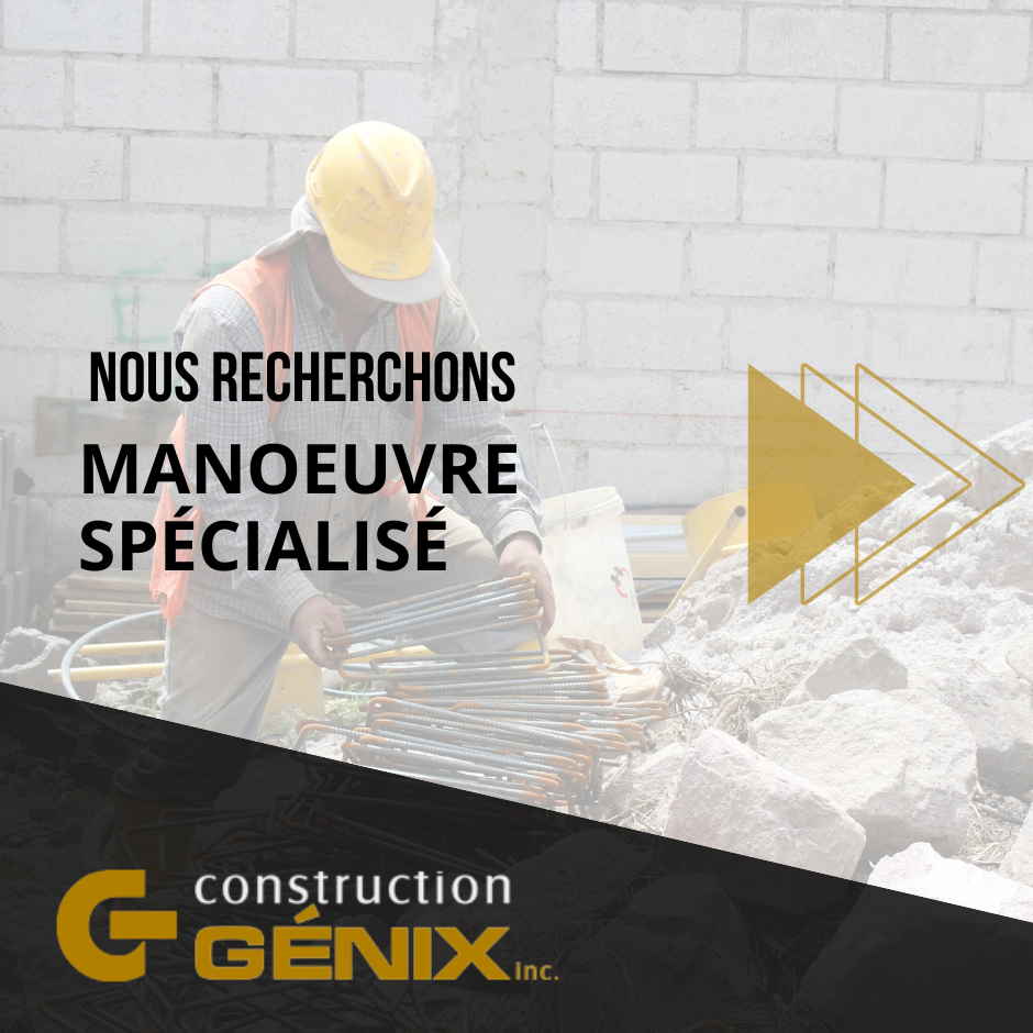 FAITES CARRIÈRE CHEZ GÉNIX! Coordonnateur en santé et sécurité EN SAVOIR PLUS→ Manœuvre spécialisé EN SAVOIR PLUS→ Menuisier EN SAVOIR PLUS→ JOINS-TOI À L'ÉQUIPE de Construction Génix Veuillez activer JavaScript dans votre navigateur pour remplir ce formulaire.Nom de l'entrepriseNom de la personne à contacterCourriel *TéléphoneVille habitéeChoix du poste désiréArpenteurMenuisierJournalier spécialiséChargé de projetContremaîtreCommisAgent SSTAdjointe administrativeGérant de projetSurintendantResponsable et directeur des équipementsResponsable signalisationResponsable qualitéOpérateurTechnicien en génie civilQuels sont vos besoins en matière de main-d'oeuvre ?Envoi de votre CV Cliquez ou déplacez un fichier dans cette zone pour le téléverser. Envoyer